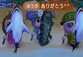 うちの村は雷をともなう、あいにくの大雨 でも、シーラカンスを釣るチャンスでもあります 9月なので、8月ほどお金になる魚&虫ゎいないけど みんなで虫&釣り大会~みたいなことしましたw それが、レアものがたくさん捕れていたようですよ なんと、たいあたりさん(ゆうき)がシーラカンスを2匹も釣ったとな わたしとMさんゎサメとかカジキとか~ 虹色クワガタも結構捕れたみたい(*`・ω・)ゞデシ!! 20:00に開門して、22:00までアッと言う間でした やっぱ、通信マジックとゎまさにこの事@@; 久々の開門で楽しかったです。 Mさん&たいあたりさん。ほんと、アリ*.゜。(*-ω人).゜。*ガ㌧♪ これからもドンドン開門していくので、 今度こそ、ワイズさんもアポナシでOKなので来てくださいね^^